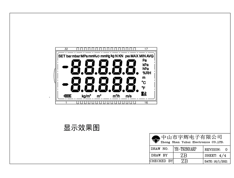 8, 驅動方式:1/4DUTY 1/3BAIS (按客戶所用IC和客戶要求確定)